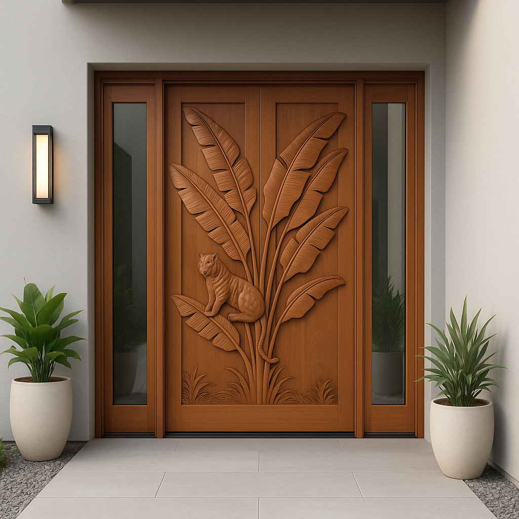 Whether you’re looking for a door that adds a touch of the tropics to your entryway or seeking a unique design for your interior, the Tropical Leaves Door is an exceptional choice. Its stunning design and impeccable craftsmanship make it an outstanding feature in any home, blending the organic beauty of nature with the artistry of woodworking.